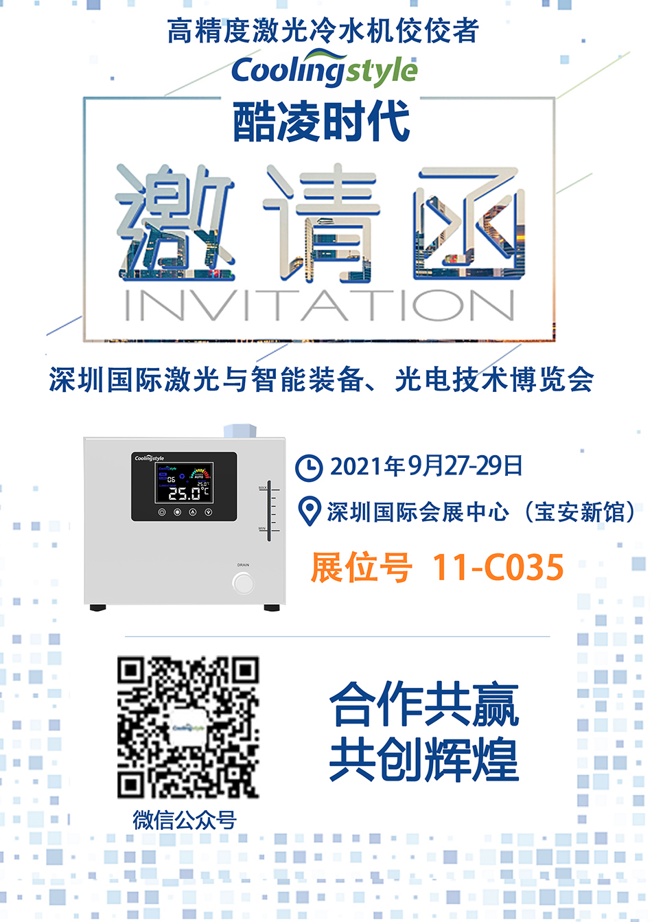 酷凌時(shí)代再次邀請(qǐng)您的蒞臨!酷凌時(shí)代展位號(hào):11-C035,本次展會(huì)酷凌時(shí)代將攜帶Q420升級(jí)系列全新制冷產(chǎn)品高精度微型激光冷水機(jī)Q420/Q580系列及其它熱銷激光冷水機(jī)系列,紫外激光冷水機(jī)、超快激光冷水機(jī)、3D打印激光冷水機(jī)等參展,讓我們一起溝通、碰撞,共同開(kāi)拓和發(fā)掘新的機(jī)會(huì)與市場(chǎng)!