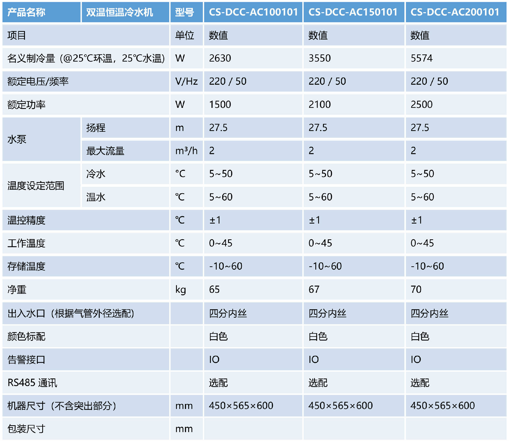 如上,是酷凌時代新推出的大冷水機的簡單介紹,客戶可根據(jù)自己的需求對應(yīng)的選擇合適的型號。除此之外,酷凌時代還研發(fā)生產(chǎn)有高精度激光冷水機、微型激光冷水機、紫外激光冷水機、超快激光冷水機、3D打印激光冷水機等產(chǎn)品可供客戶選擇,滿足客戶的多種需求。