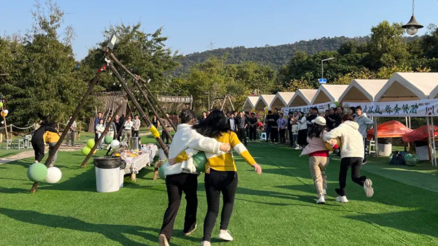 “背靠氣球”游戲考驗雙人的合作協調能力。大家雙人背夾氣球,一路齊心協力卻又跌跌撞撞地跑回終點。六個氣球的爭奪戰中,速度與激情并存,不時有氣球爆裂的 “嘭嘭” 聲,卻絲毫沒有影響大家的熱情,反而讓游戲更加刺激有趣。