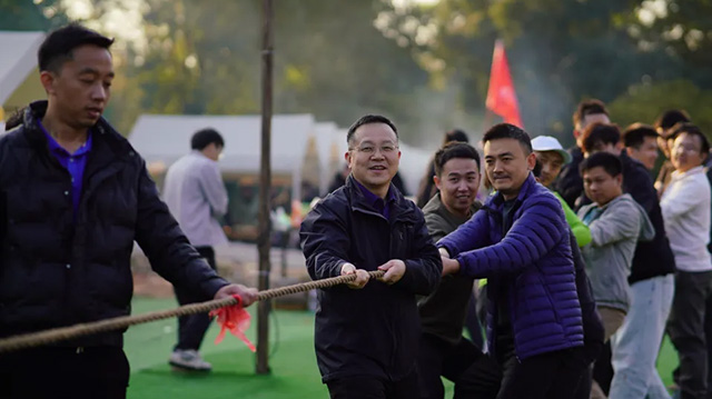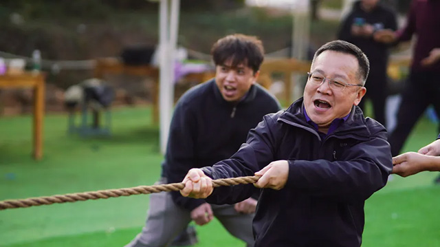 酷凌時代和慧川子公司各派出 12 人參加,三局兩勝的賽制讓比賽充滿了懸念與刺激。隨著哨聲響起,雙方隊員緊握繩子,咬緊牙關,使出渾身解數,腳蹬地、身體后仰,臉漲得通紅,啦啦隊的加油吶喊聲震耳欲聾,仿佛連空氣都凝固了。經過一番激烈的角逐,最終勝負揭曉,但大家臉上洋溢的都是滿足與快樂。這場拔河比賽,不僅比出了勝負,更拉近了團隊成員間的距離,增強了彼此間的信任與默契。